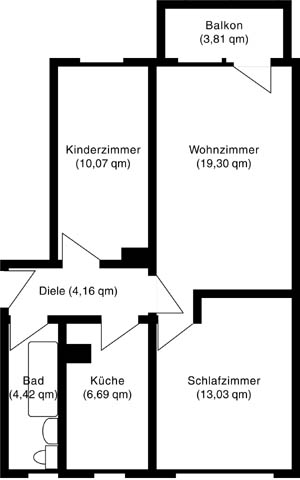 3 Zimmer mit Balkon (ca. 61,48 qm)