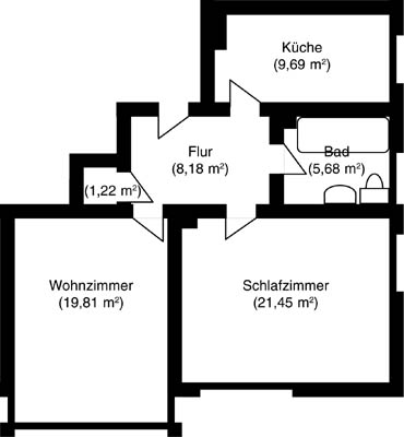 Hier finden Sie den Grundriss der ausgewählten Wohnung mit den Quadratmeterzahlen der einzelnen Zimmer. Ein Klick auf "zurück" am unteren rechten Bildschirmrand führt Sie auf die vorhergehende Seite zurück.
